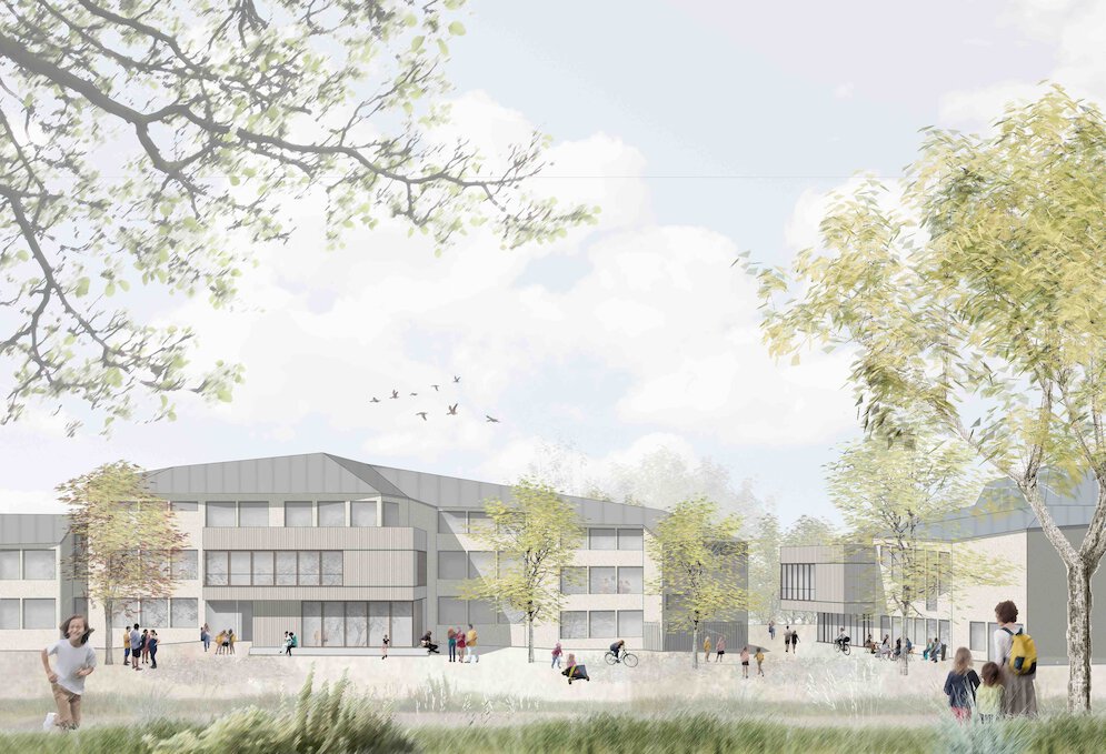 Der gesamte Gebäudekomplex soll in den kommenden Jahren grundlegend saniert und teilweise erweitert werden. In der ersten Umbau- und Erweiterungsphase wird sich dem westlichen Gebäudeteil an der Basler Straße mit Festsaal / Turnhalle / Werkstätten gewidmet. Der Entwurf sieht einen zweigeschossiges Eingangsgebäude vor. Erdgeschossig wird ein einladendes, offenes Foyer (das gleichermaßen der Mensaerweiterung dienen kann) mit Treppenanlage geschaffen, welche in das darüber liegende Geschoss führt und den bestehenden Festsaal erschließt. Neben den neuen Zugängen in die vergrößerte erdgeschossige Mensa, werden vom Foyer aus auch Toiletten- und Nebenräume und der westliche Werkhof mit den angegliederten Werkräumen erschlossen. Im ersten Obergeschoss kann der bestehende Festsaal nun barrierefrei durch eine neue Aufzugsanlage erreicht werden und ein, dem Saal gegenüberliegender Eurythmie- und Mehrzweckraum als Erweiterung dem Foyer flexibel zugeschalten werden. Auf dieser Ebene befinden sich auch zusätzliche Lagerräume und die Turnhalle kann über einen zusätzlichen Zugang erschlossen werden. Durch kleine Umbauten kann die Besucherkapazität des Saals erhöht werden.